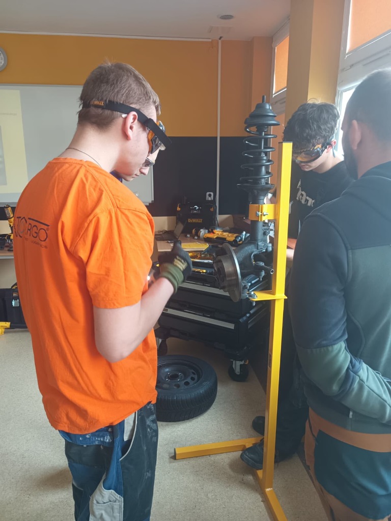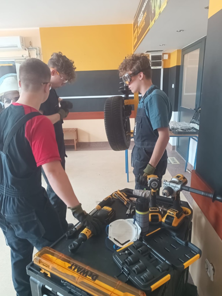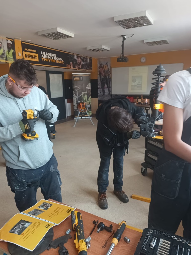 24.03.2026 szkolenie DEWALTz zastosowania narzędzi serii mobile do wyposażenia warsztatów samochodowych. Z tajnikami motoryzacji zapoznali się uczniowie klasy 3D i 3mr.